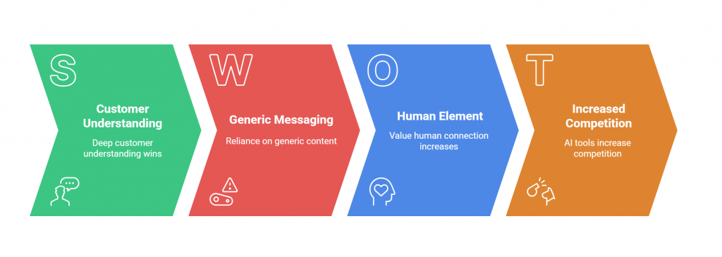 AI will continue to flood the market with polished but soulless content. Everyone will have access to identical tools, templates, and tactics.